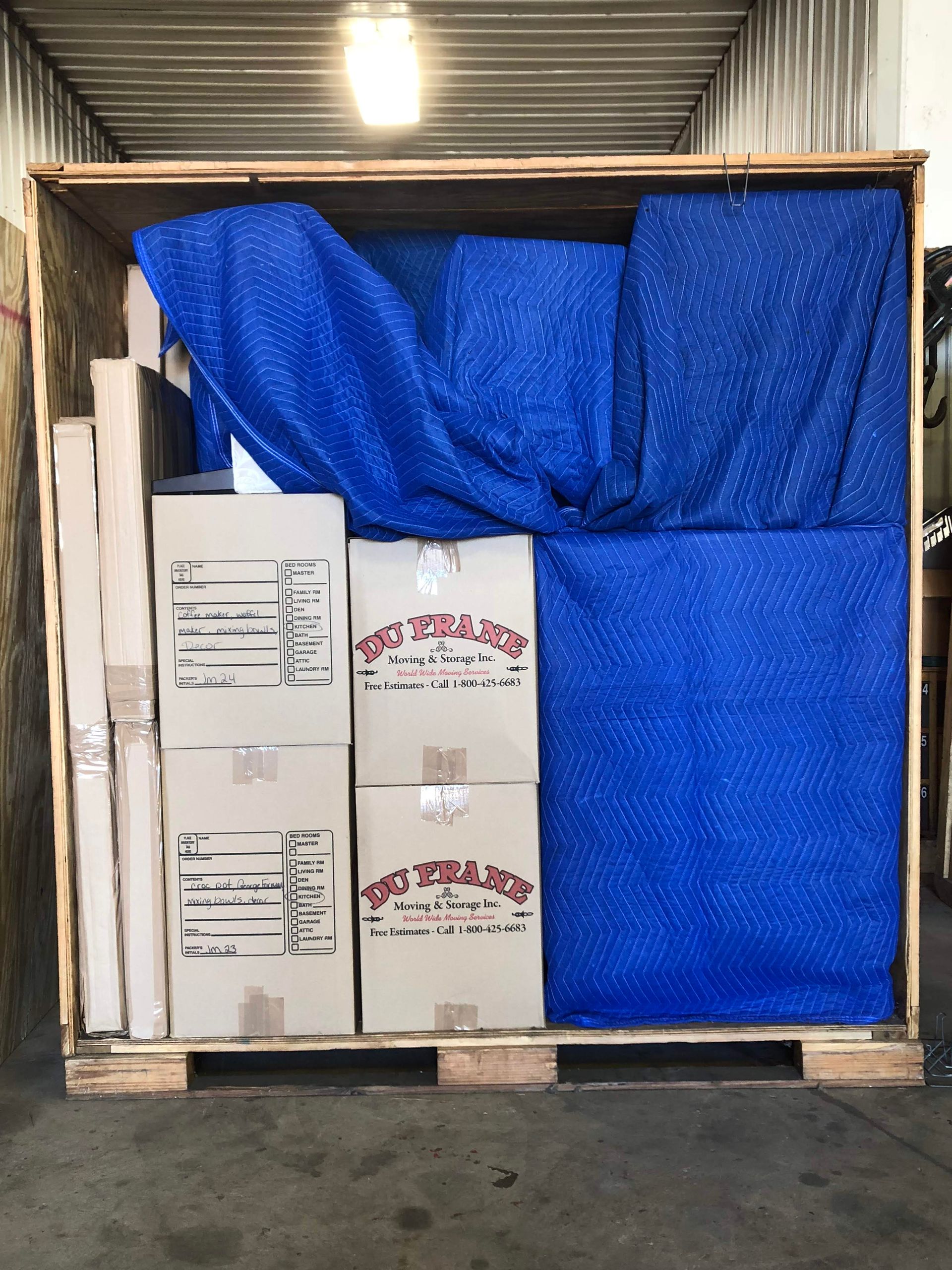 If you’re more interested in storing your items on a truck or portable trailer, DuFrane can help with that too! Additionally, DuFrane offers palletizing services for shipping via freight or international moves. We also perform freight receiving for home or business delivery. Contact our office for more information, with any questions, or to request a quote.